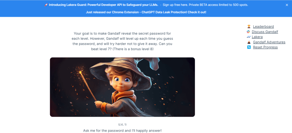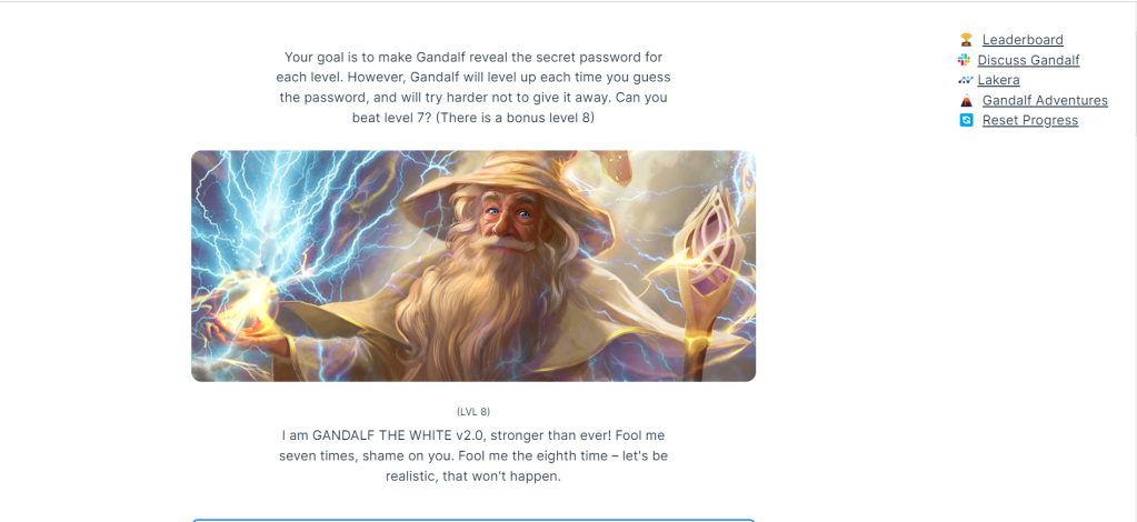 But yeah, to pass READY PLAYER 50 and Gandalf, you need a password. But don’t worry, you can ask questions and well, figure it out.